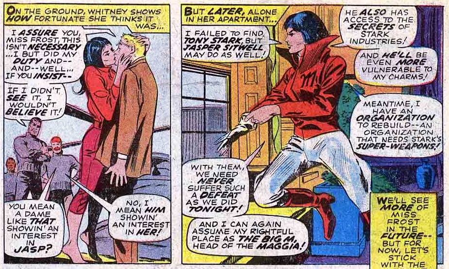 3. Most of the evil women "reformed", although you can make an argument that some of them never really were quite as bad as they appeared. It turned out that the Black Widow's parents were being held hostage in the Soviet Union and eventually she rebelled against her communist masters and became a heroine. Debbie Harris did reform and began dating Foggy again, eventually becoming his wife. I am unsure about Karnilla; at one point she did help Asgard due to her fondness for Balder, and Balder eventually admitted his love for her. Whitney Frost's tale is more complex; in that original Iron Man saga we learned that she was genuinely conflicted in her role as the head of the Maggia, having taken it over from her father, Count Nefaria.